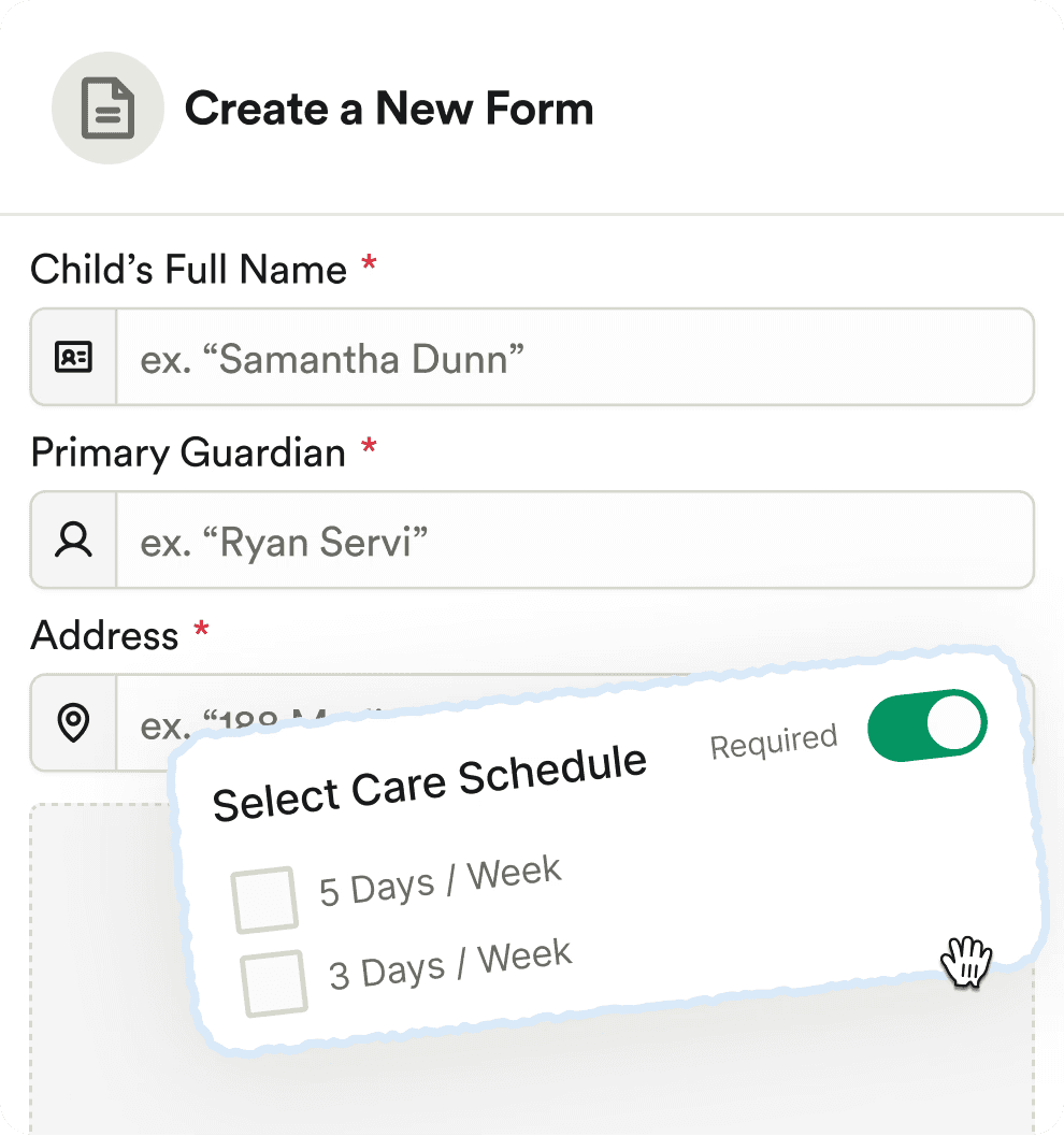 Still using licensing forms in PDF format? Upload them once and turn them into fillable, mobile-friendly forms families can complete and sign instantly. No printing. No manual edits. No DocuSign fees.