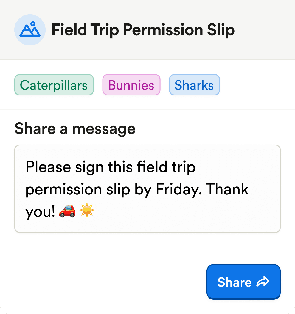 Stop wasting time customizing each packet manually. Share specific forms with individual families, classrooms, or groups, with full control over permissions.
