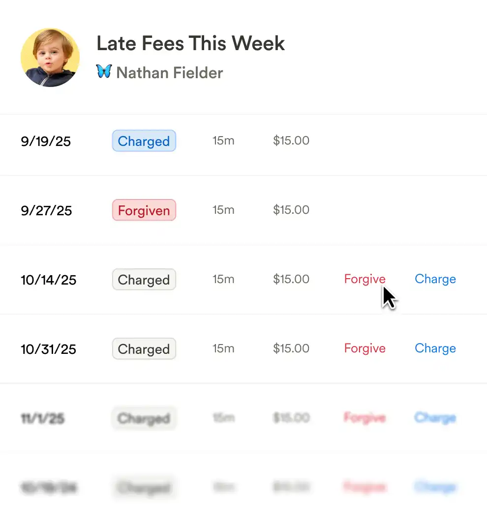 Your late pick-up policy is only useful if it’s enforced. Playground makes it automatic — no spreadsheets or guilt-tripping required.