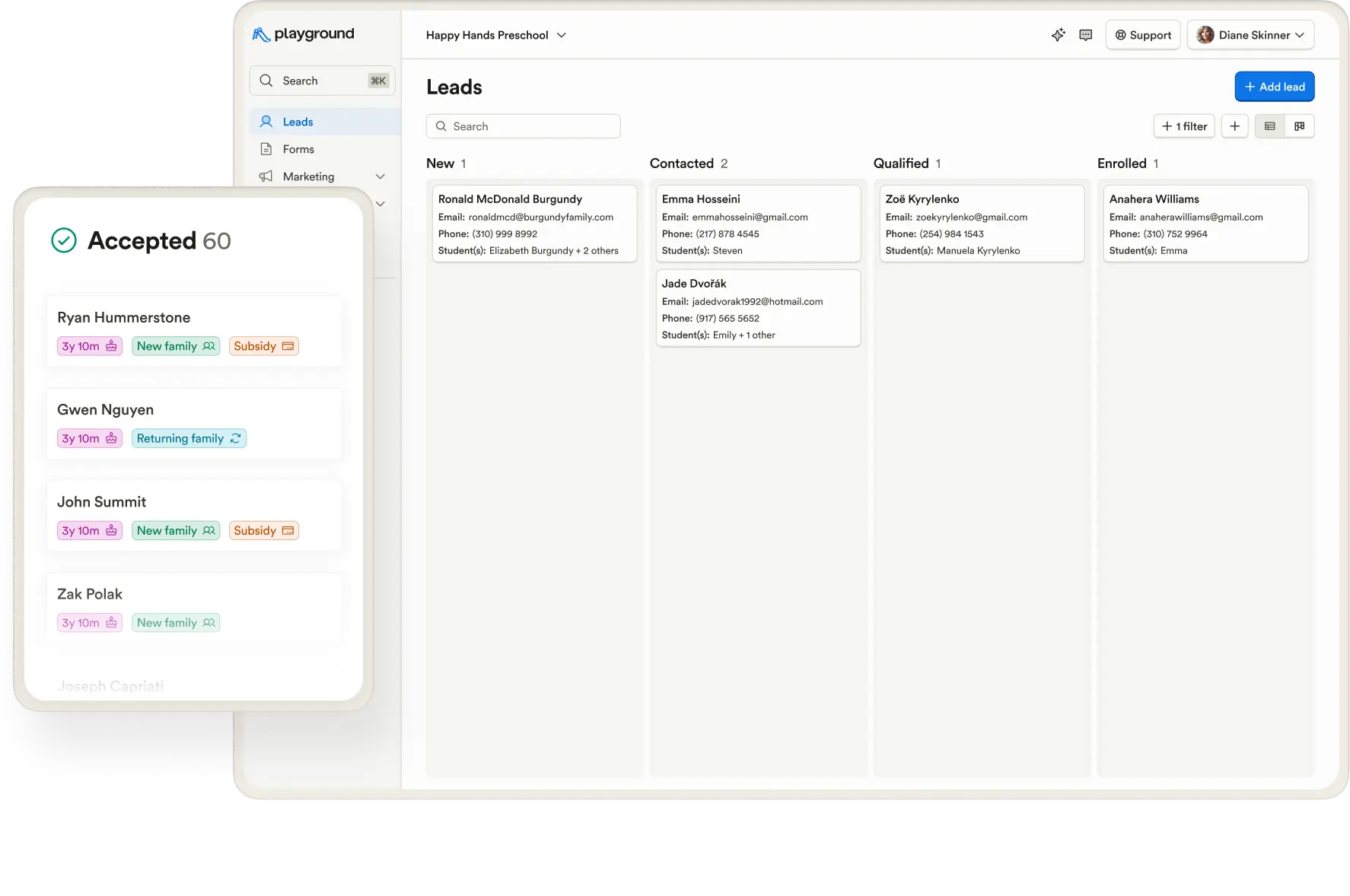 Track inquiries, follow up automatically, and convert more families with less effort.