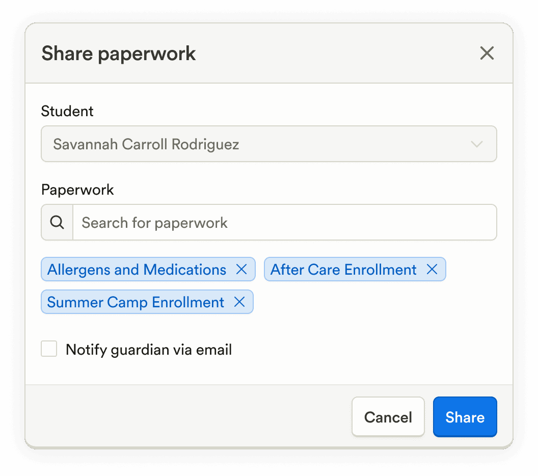 Multiple paperwork items can now be selected from the student share screen for faster sharing.