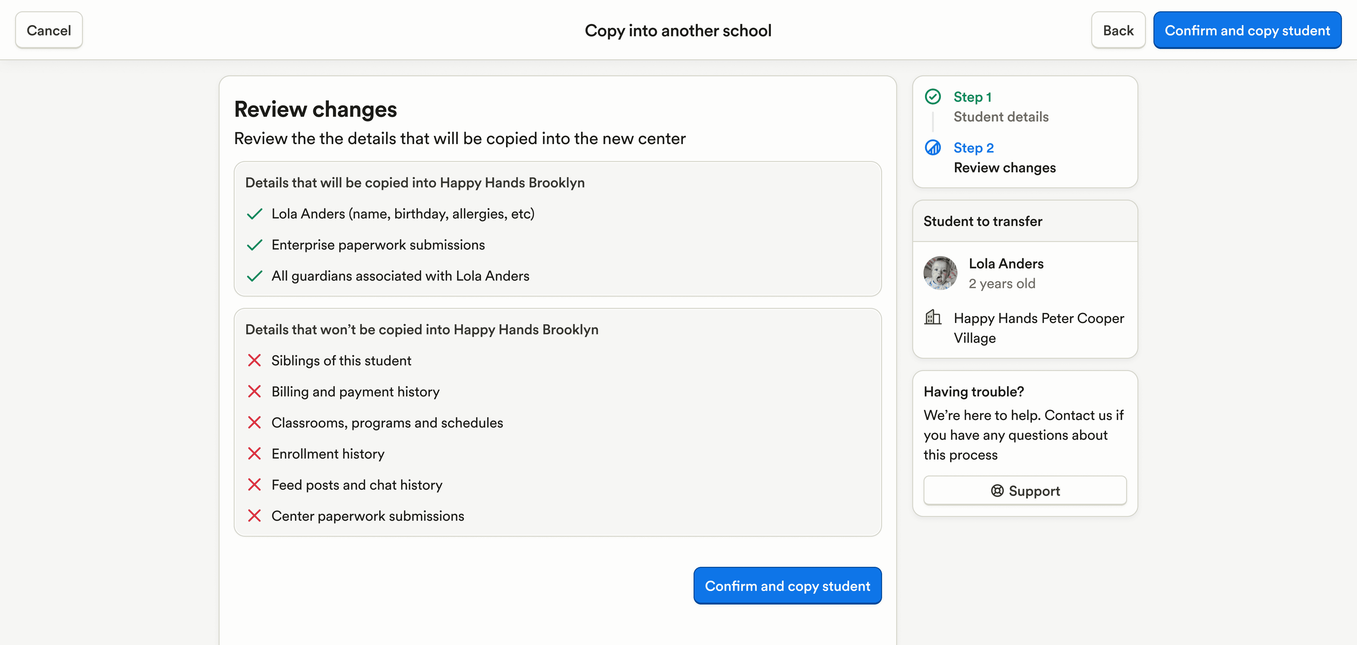 The flow for moving students from one program to another has been redesigned with clearer steps and outcomes, reducing confusion during transfers.