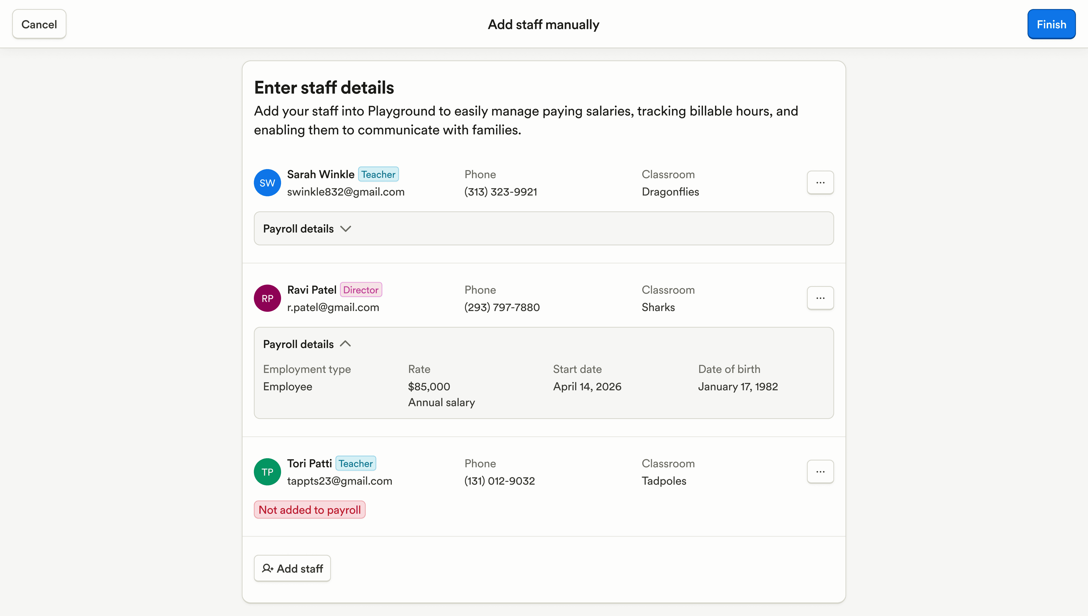 Staff can now be added to payroll during bulk staff uploads, streamlining initial setup.
