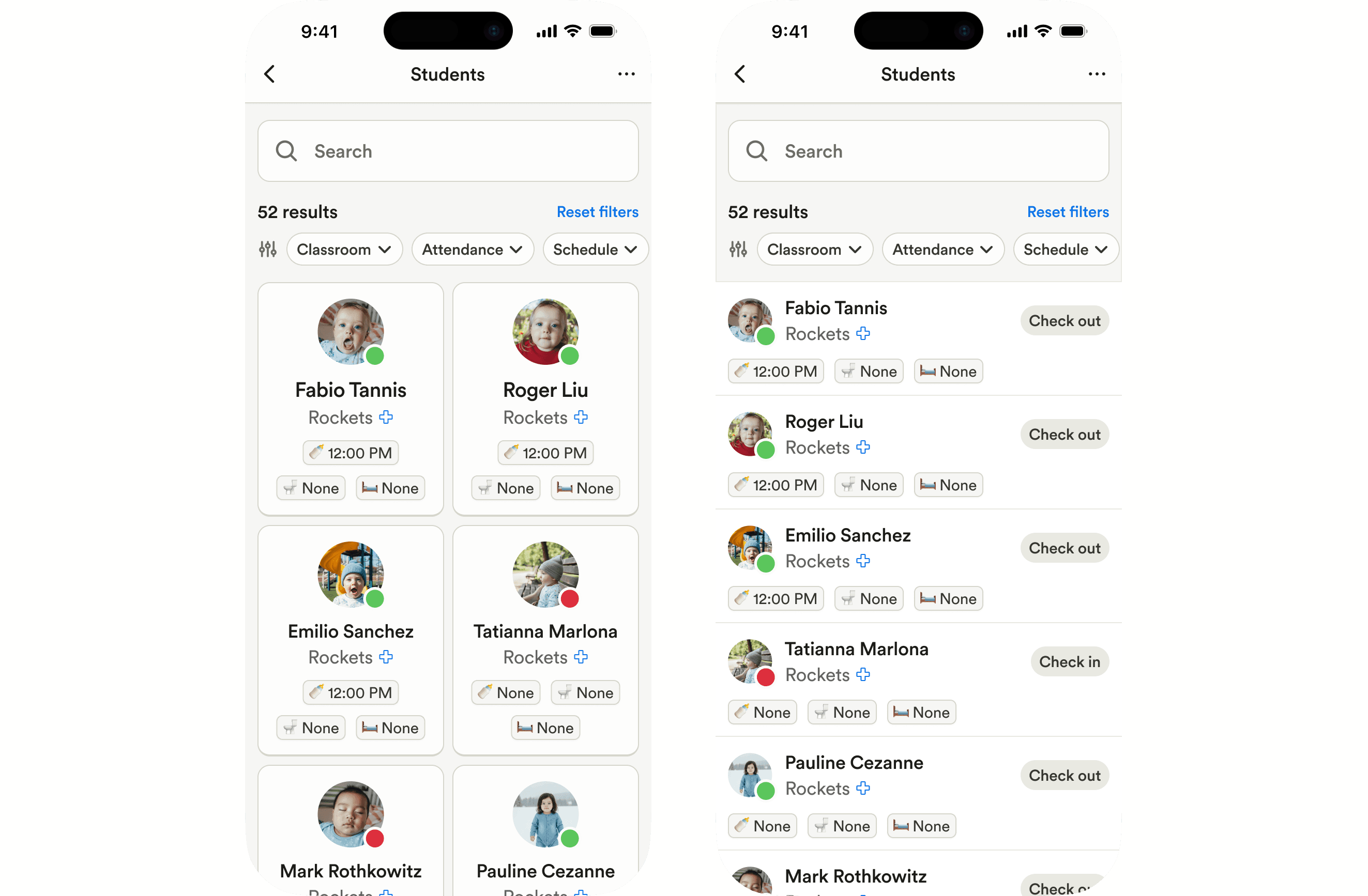 The mobile student roster has been refreshed with faster filtering and a cleaner, more intuitive experience for daily use.