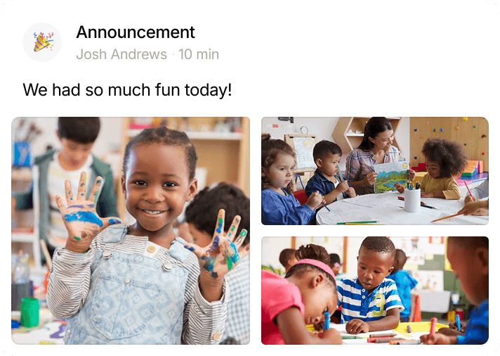 A beautiful family portal keeps parents in the loop — messages, photos, daily reports, all in one place.