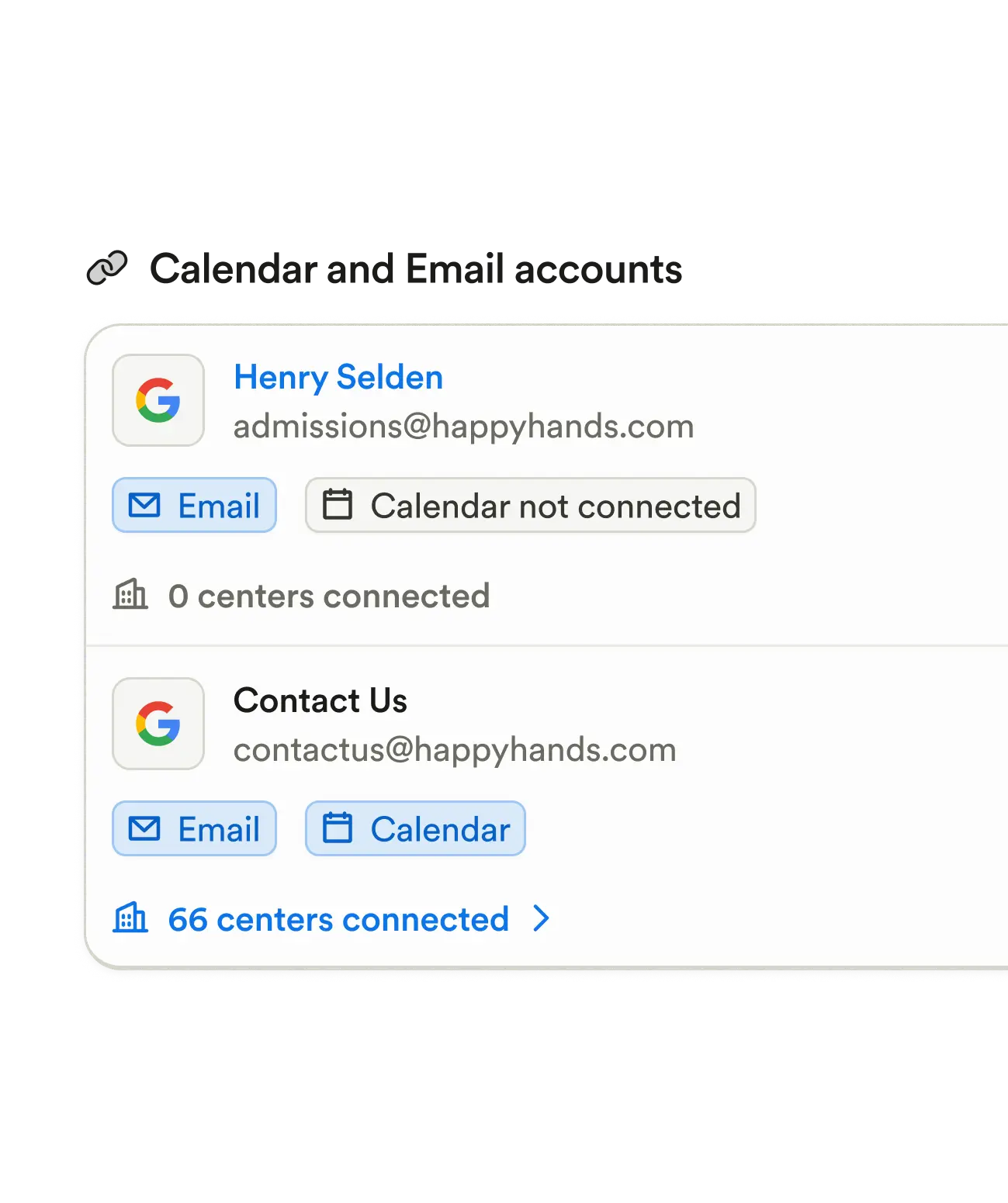 Connect Google Calendar from CRM Settings, select your calendars, and start syncing in seconds.