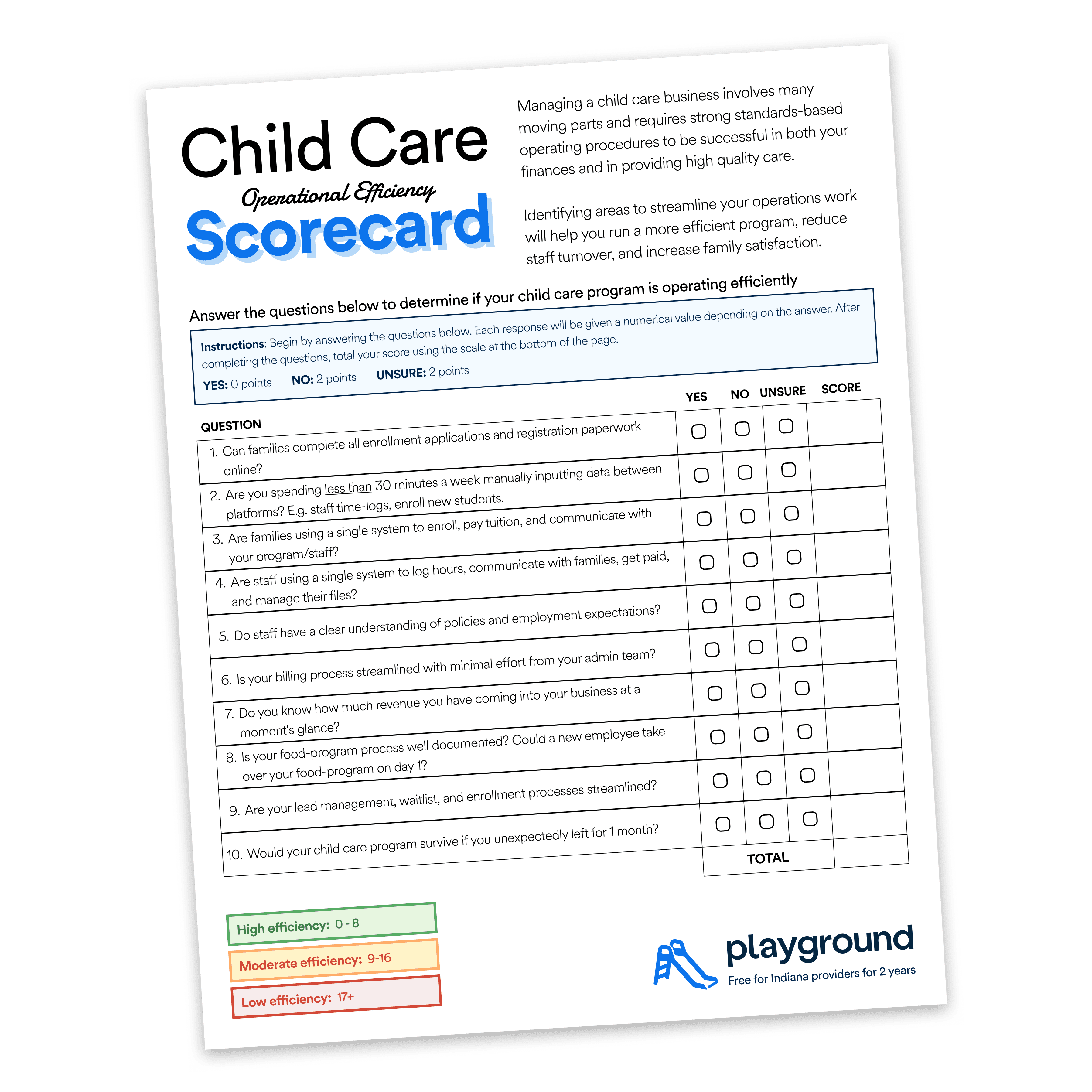 Child Care Operational Efficiency Scorecard