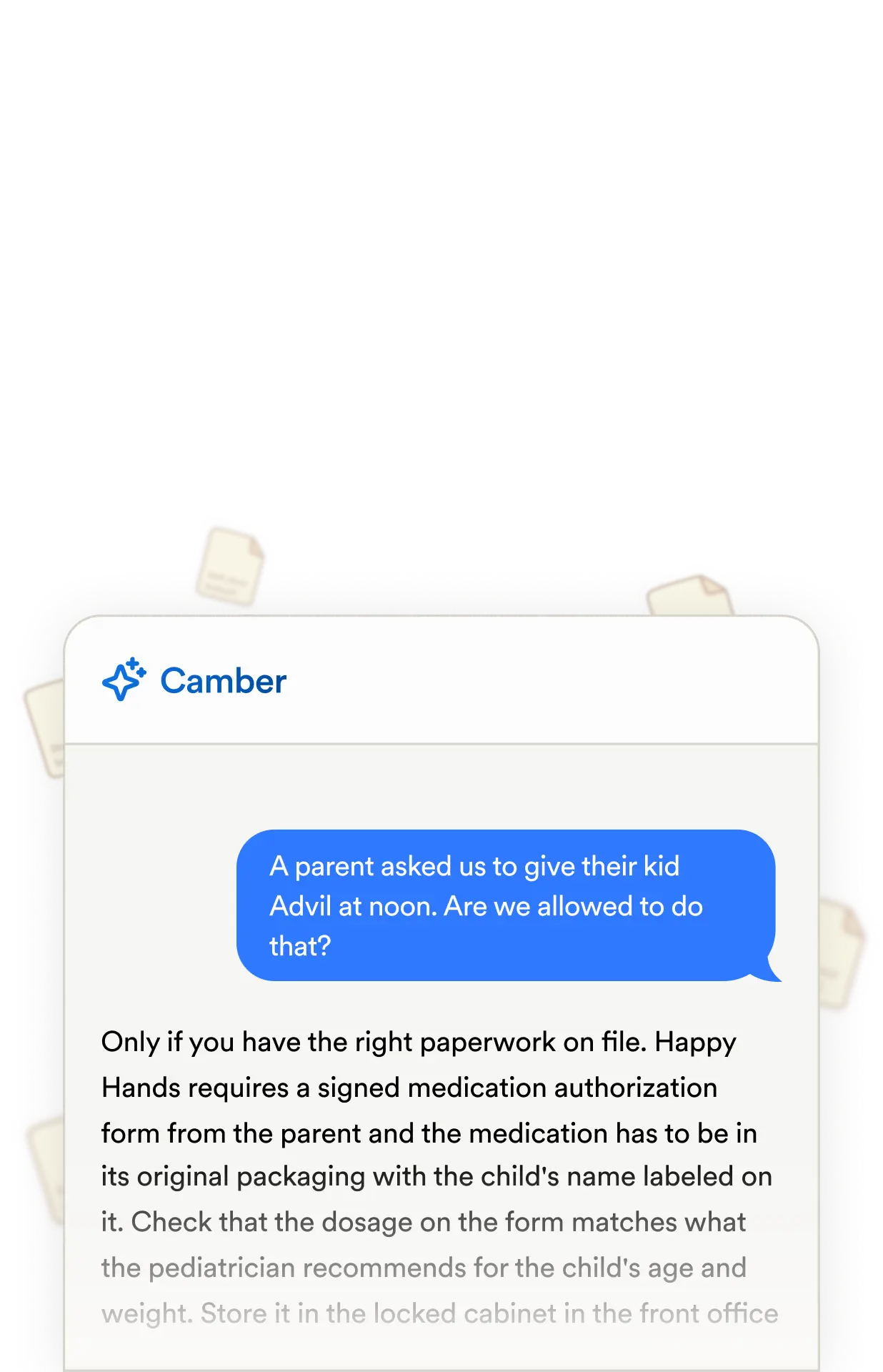 Camber is trained specifically on your business, just like a normal employee
