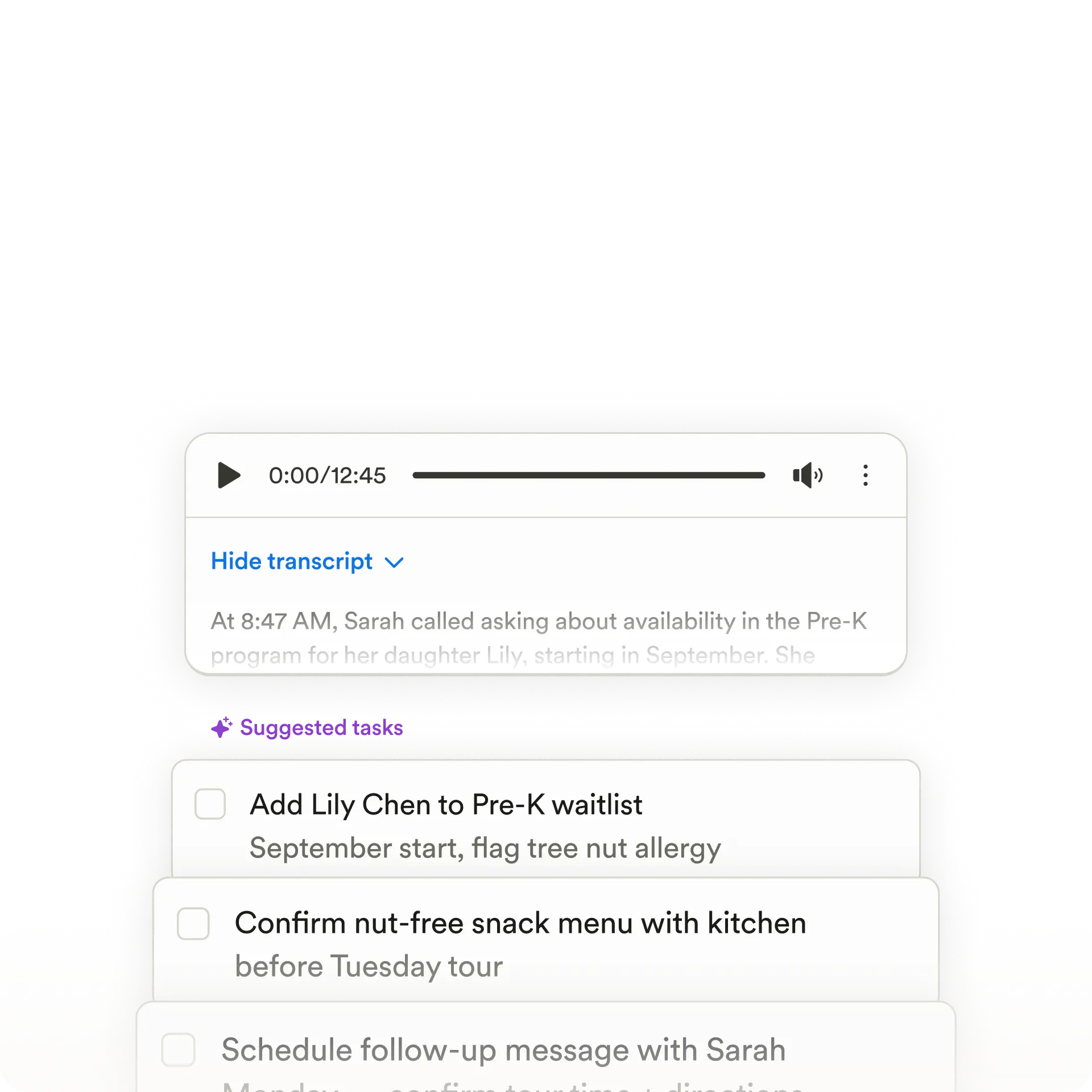 Paired with suggested follow-up tasks