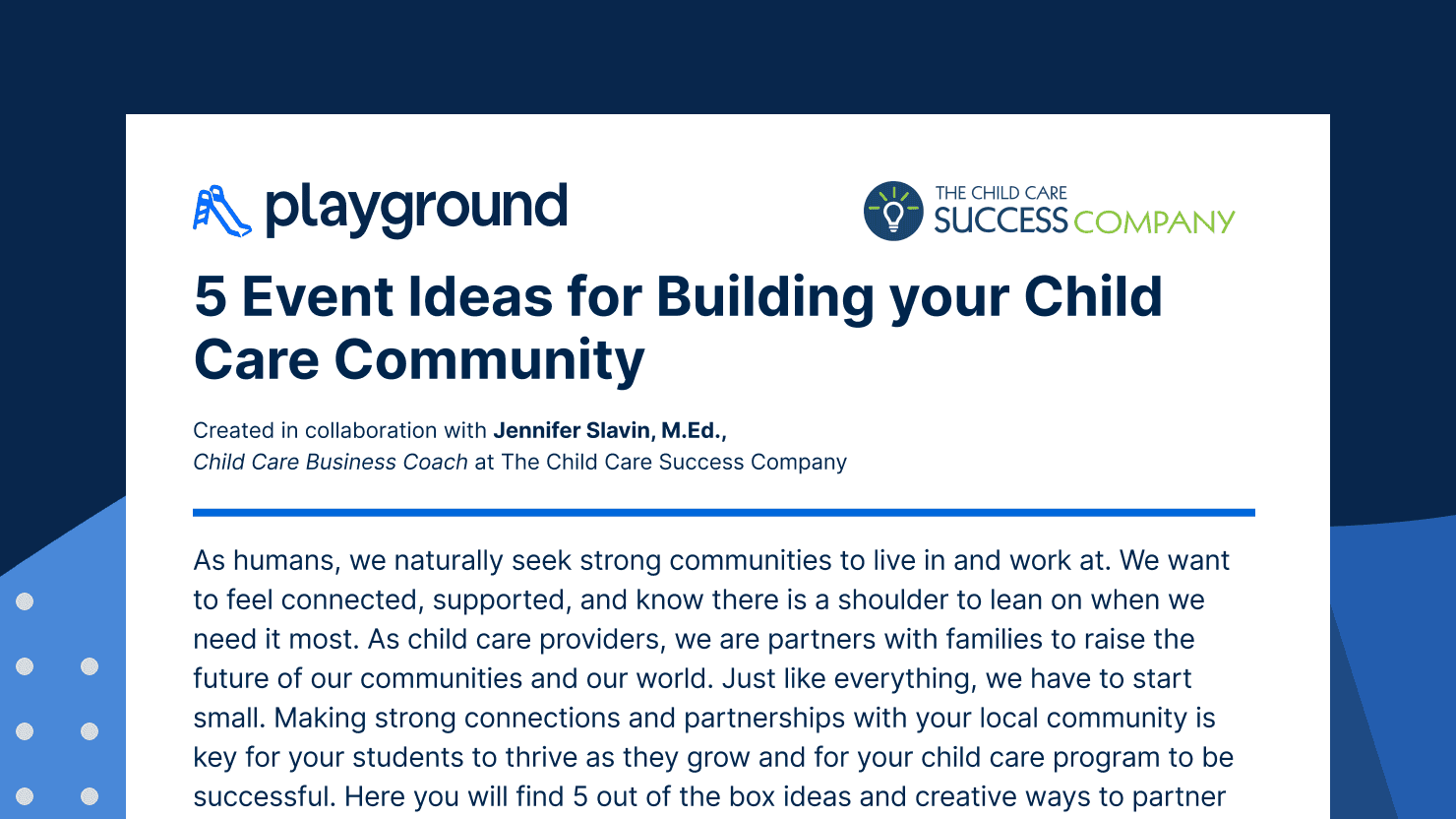 Grow your program, simplify your life, and delight your families by switching to Playground child care management software & app